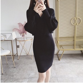 秋冬毛衣裙中长款V领性感女装新款毛衣女2022爆款...