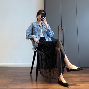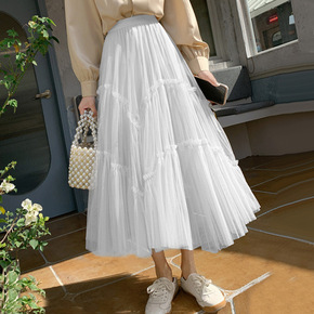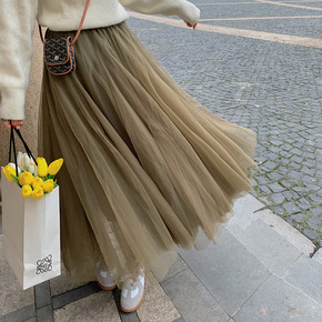 女装半身裙2022夏款渐变网纱半身裙韩版高腰显瘦网...
