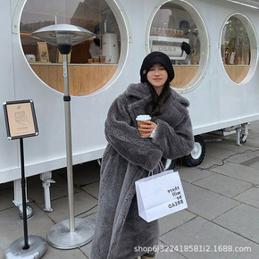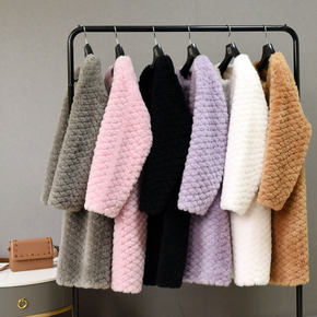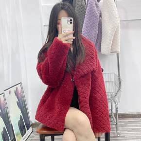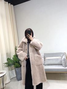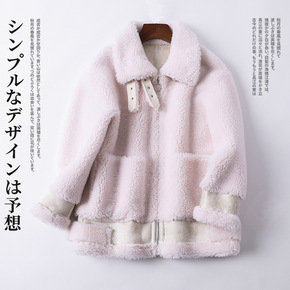 皮草颗粒羊剪绒大衣女秋冬新韩版中长款复合皮毛一体羊...