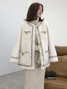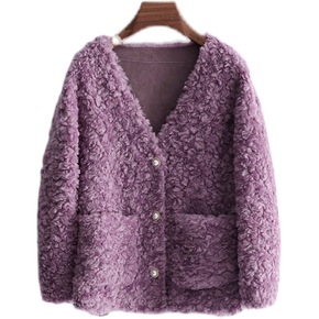 2021新款羊剪绒大衣女短款V领小香风卡拉卷羊毛皮...