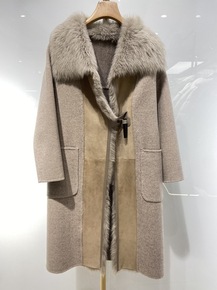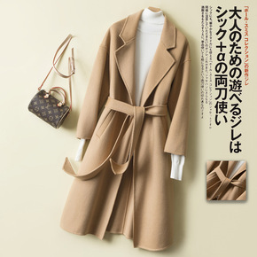 101801大衣女山羊绒长款M家正确版本经典双排扣...
