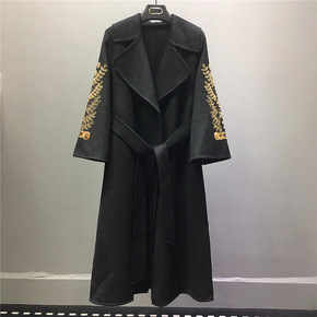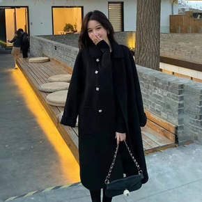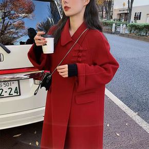 网红爆款双面羊毛大衣中长款中国风宽松休闲毛呢外套...
