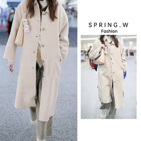 小香风羊毛风衣外套女新款韩版简约卡其色宽松时尚休闲...