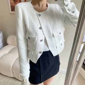 法式小香风羊毛呢气质短款外套女名媛圆领编织粗花呢洋...