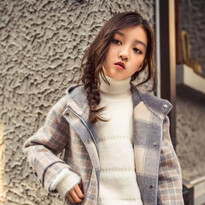 法单新款外贸英伦风大衣气质人字纹小个子呢子中长款外...