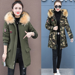 棉衣女中长款加绒加厚棉服民族风迷彩中老年学生修身冬...