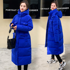 克莱因蓝棉服中长款ins港风2022冬新款小众棉衣...