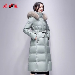反季节羽绒服女长款过膝加厚亮面白鸭绒时尚韩版202...