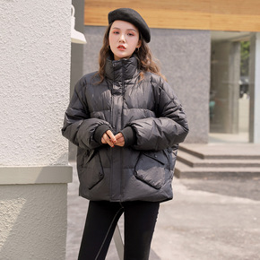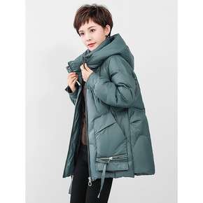 韩版2021秋冬新款欧洲站宽松简约斜口袋羽绒服女中...