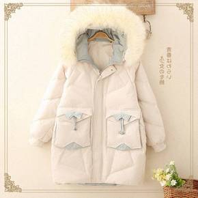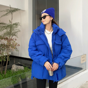 2021新款旺旺面包服冬季糖果色保暖宽松收腰连帽中...