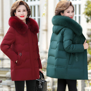 妈妈羽绒服中长款洋气2021新款冬装50岁中老年人...