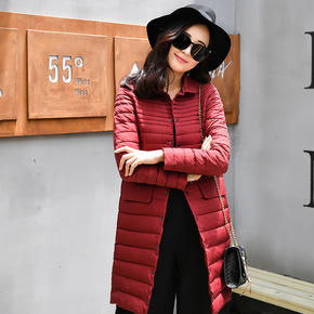 实拍新款米色轻薄羽绒服女冬季中长款立领气质时尚宽松...