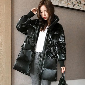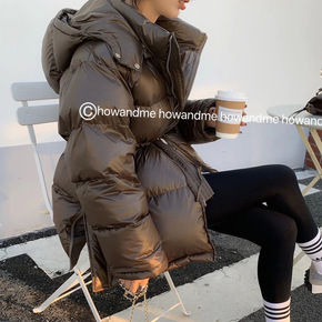 2021冬季新款羽绒服女中长款时尚亮面字母宽松连帽...
