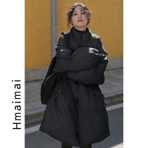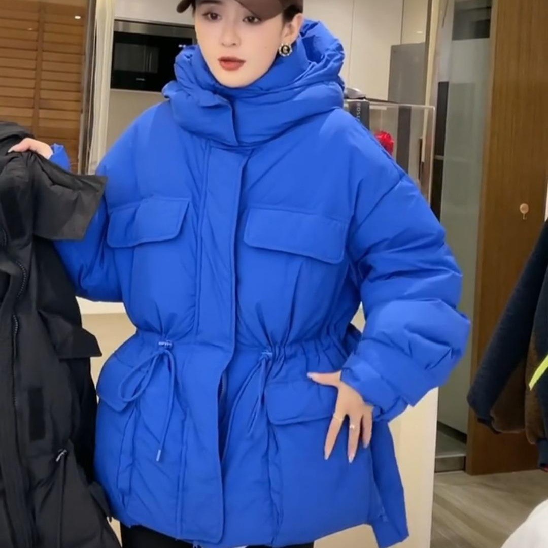 时尚韩版2020冬装新款韩版宽松立领抽绳羽绒服中长...