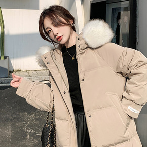 糖果色大毛领羽绒服女2021年新款韩版宽松中长款加...