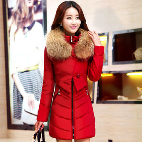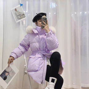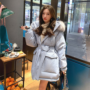 收腰羽绒服女2021新款冬季韩版大毛领中长款面包服...