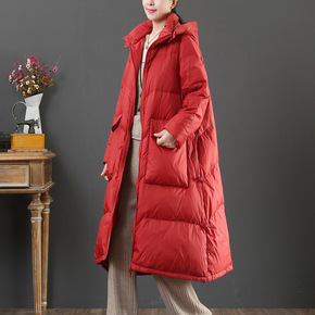 保暖羽绒服女中长款2021新款过膝茧型加厚连帽时尚...