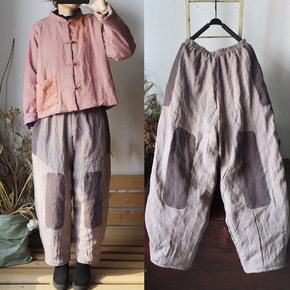 文艺范棉麻复古禅意灯笼裤女冬季加厚夹棉裤子宽松大码...