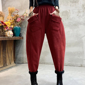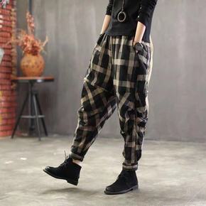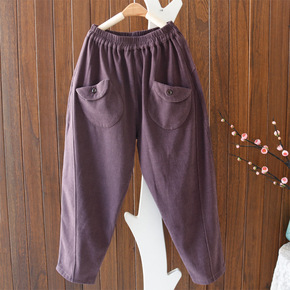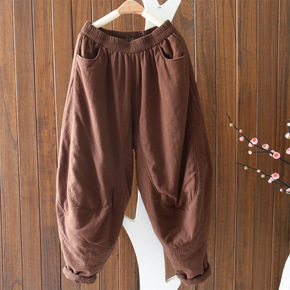 文艺秋冬棉麻夹棉加厚萝卜裤女裤复古宽松大码哈伦裤棉...