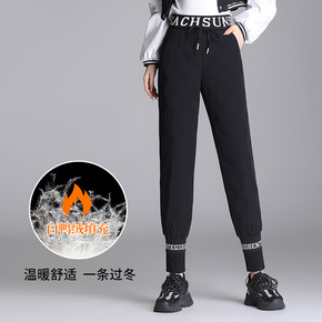 货2022冬季新款休闲裤绒厚卫裤女哈伦裤保暖小脚羽...