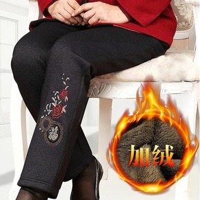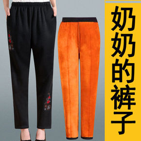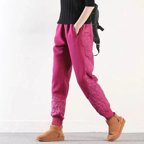 冬季新款中老年蚕丝棉裤女加绒加厚外穿高腰宽松自发热...