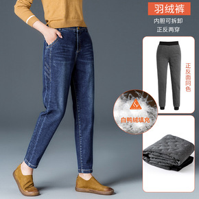 2021年冬季新款牛仔羽绒裤女裤弹力松紧白鸭绒加厚...
