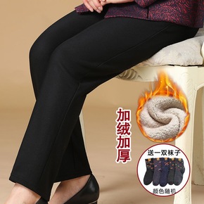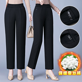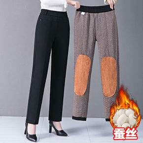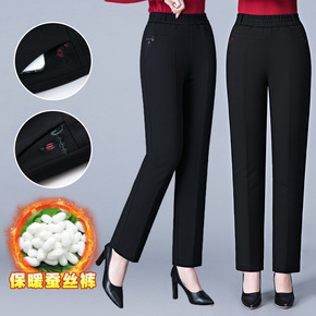 桑蚕丝棉裤女冬季外穿加绒加厚高腰保暖裤中老年直筒休...