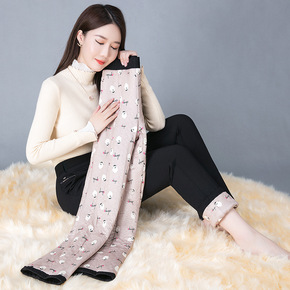 桑蚕丝棉裤加肥加大码高腰女裤2021冬季羊驼绒保温...