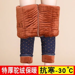 冬季新款中老年棉裤女加绒加厚外穿宽松高腰驼绒棉裤女...