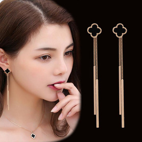 巧兰轩四叶草银针韩国气质女长款个性百搭耳钉环简约耳...