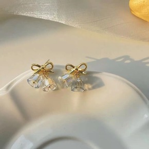 S925银针高级感复古小众百搭蝴蝶结圣诞水晶铃铛耳...