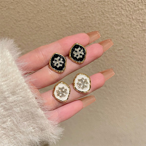 S925银针轻奢复古小香风耳环网红气质高级感黑色耳...