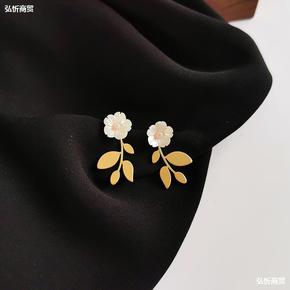 金属韵味拍潮形状银针典雅森系花朵街淡雅淑女S925...