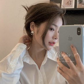 真金电镀银针锆石几何耳环韩国东大门简约金属感耳钉气...
