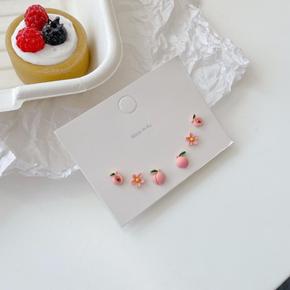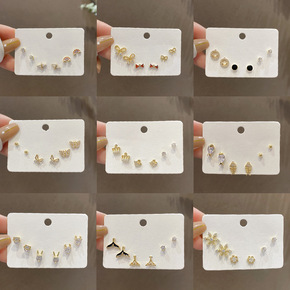 黑色四件套小巧几何925银针耳钉女 简约桃心学生套...