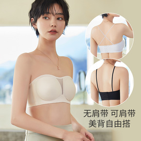 桑蚕丝无肩带内衣女无钢圈文胸聚拢防滑无痕胸罩抹胸夏...
