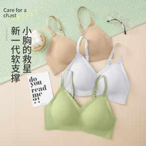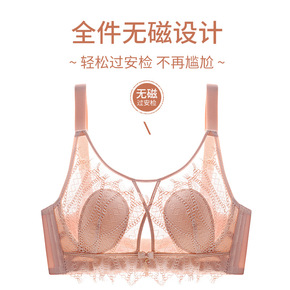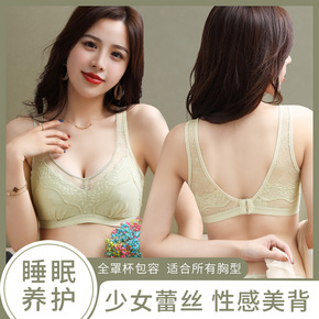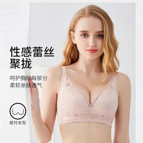 新款无钢圈文胸女蕾丝收副乳胸罩上托式无痕聚拢睡眠养...