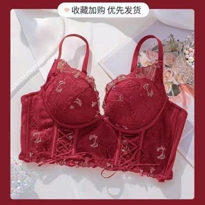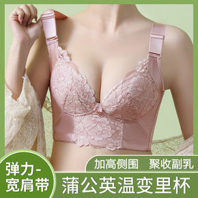小胸聚拢无钢圈内衣女蕾丝性感胸罩上托收副乳调整型文...