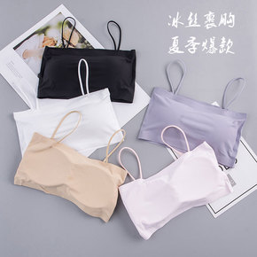 夏季冰丝无痕一字围抹胸内衣少女学生运动文胸吊带美背...