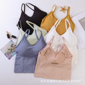 吊带背心抹胸女螺纹美背内衣裹胸带胸垫一体式百搭外穿...
