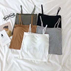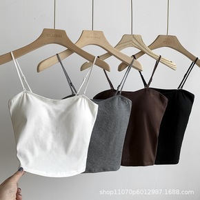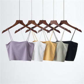 夏季纯色吊带固定乳胶胸垫带背心女裹胸上衣无钢圈细带...