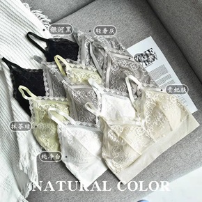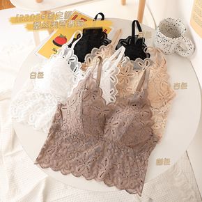 小香风固定杯蕾丝小背心 美背文胸女 乳胶蕾丝内衣无...