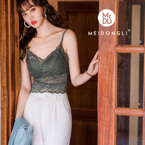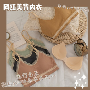 法式蕾丝吊带抹胸背心女士带胸垫文文同款性感美背内衣...