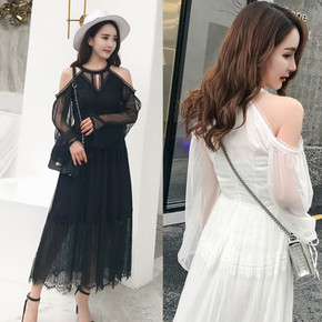 欧美风格新款蕾丝连衣裙蕾丝衫百搭修身收腰连衣裙...