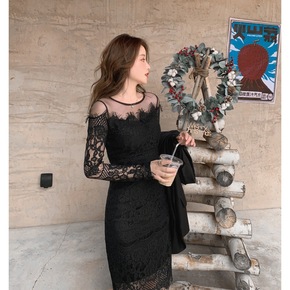 实拍 2021秋装新款镂空性感蕾丝晚礼服年会连衣裙...
