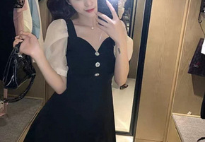 法式显瘦赫本风轻熟小黑裙2022夏季新款名媛v领蕾...