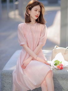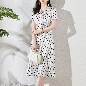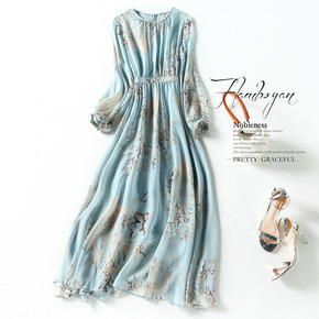 蚕丝通勤连衣裙2022春新款女装时尚百搭衬衫袖圆领...