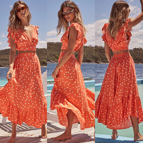 亚马逊2022跨境欧美夏季新款女上衣性感印花V领蕾...