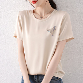 雪纺衫夏季女装2022年新款仿醋酸圆领上衣时尚宽松...