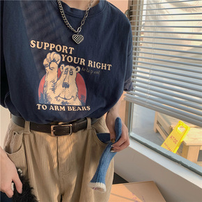 2021夏季亚马逊热卖欧美女装圆领宽松纯色短袖休闲...
